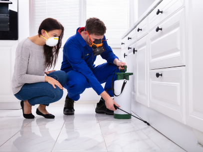 We carefully spray chemical pesticides on all items near a floor and wall junctions, wall-mounted items, and structural voids.